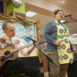Brian tells the story and sings the songs from “Ivy and the Wicker Suitcase” accompanied by Valerie’s MOVING PANORAMA, our “crankie show”. Experience the EPIC POEM! Hear the Catchy tunes! See the Crankie show! A low tech immersive multimedia HAPPENING!